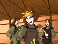 Suki and her fellow Kyoshi Warriors defended Zuko and his family from the New Ozai Social club.