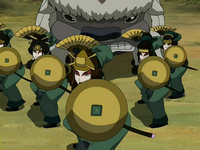 Katara and Suki later discussed the possibility of the latter didactics the manufacturing plant'south nonbender guards to chi-block. Upon presenting the idea to Aang and Sokka, Suki was immediately complemented by Sokka on her talent and intelligence. With a new attack of Liling imminent, Suki was confident that she could at least teach the already well-trained guards the nuts and immediately set to work, fifty-fifty impressing the Avatar upon witnessing an entire army of nonbenders. In the process of the training, Suki struck upwards a good working relationship with the guards' captain.