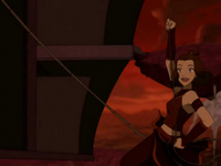 Suki steered a captured airship into the vessel Sokka and Toph were on, saving them from certain death.