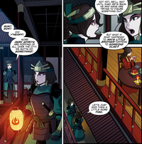 - ↑ The comic Suki, Lonely claims that Kyoshi Island had airtight its borders and that this isolationism applied to all of Kyoshi Island,[2] just this is contradicted by other canon information such as the episode "The Warriors of Kyoshi",[one] the older Avatar: The Concluding Airbender official website,[12] and Avatar Extras.[13] Thus, the isolationism as portrayed in the comic tin just apply to some villages on the isle, not all of them.